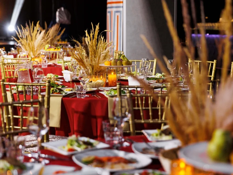 Некачественное обслуживание способно испортить впечатление от шикарного зала и идеальной кухни. Вам важно узнать количество официантов, их скорость работы и профессионализм. Оптимальный расклад — 1 официант на 8-10 гостей. Сотрудники должны знать программу события и соблюдать тайминг, а также выглядеть в соответствии с дресс-кодом события. Гости ценят не только вкус, но и зрелищность подачи блюд. Часто мы включаем гастро-шоу для глубины проработки концепции: фломбирование – оно же огненная подача мяса, жидкий азот, авторские коктейли и ловкий бармен будут вам “на руку”.