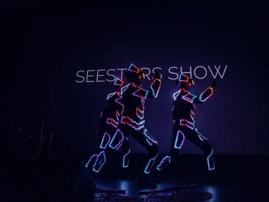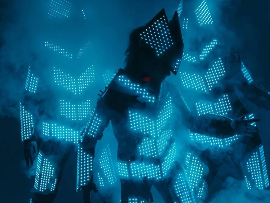 Чаще всего, заказчики обращаются к нам за светодиодным шоу, здесь лидирует шоу Robots - сочетание программируемых пиксельных костюмов, реквизита и современной хореографии.