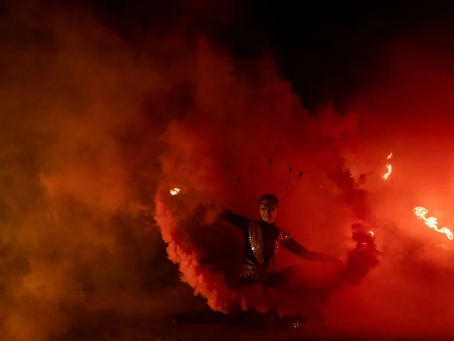 Вдохновляет желание удивлять и пробуждать фантазию. Например, в шоу NLO наши образы - это существа с другой планеты, яркие и таинственные, и зритель наблюдает за их взаимодействием и трансформациями, превращением в крылатых инопланетных бабочек.