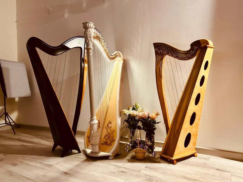 Для уличных мероприятий мы с заказчиками чаще выбираем её. И это действительно более «эстрадный» инструмент с точки зрения эстетики: у неё очень выразительный, дорогой, «хайтековый» внешний вид. А акустическая арфа задает определенную «академическую» планку.