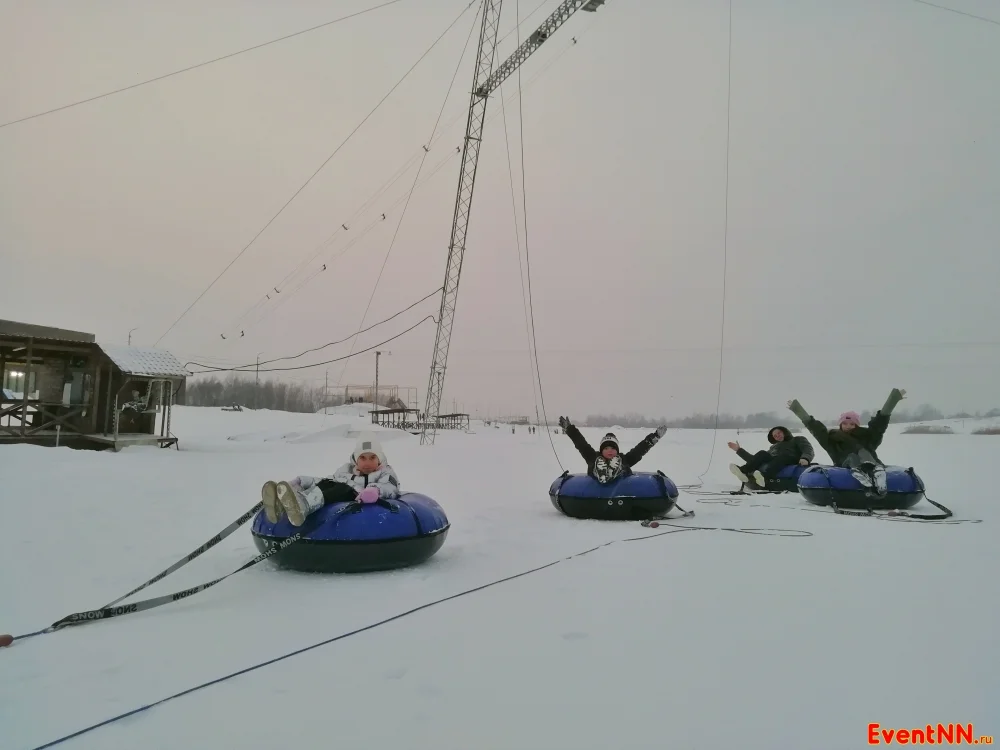 В зимний период кольцевая лебёдка переоборудуется под электротюнинг на ватрушках по озеру. Склон с подъёмником для тюбинга с двумя трассами. И для любителей адреналина – банан за снегоходом.