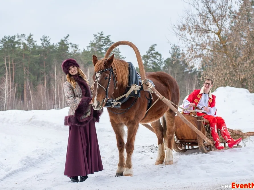 Зимой же катания становятся по-настоящему интересными и захватывающими. Получасовая прогулка по заснеженному лесу в настоящих деревенских санях розвальнях, на слое душистого сена и под тёплыми козьими шкурами, под звон бубенцов и колокольчика окунает современного человека в давний быт наших прародителей.