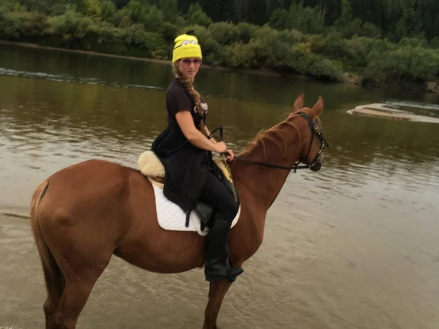 Дети на маршруте идут на байдарках, а на стоянках катаем на лошадях: до 12 лет катаем под узцы или на корде, а старшим организовываем детские смены на более спокойных лошадях в сопровождении взрослых.