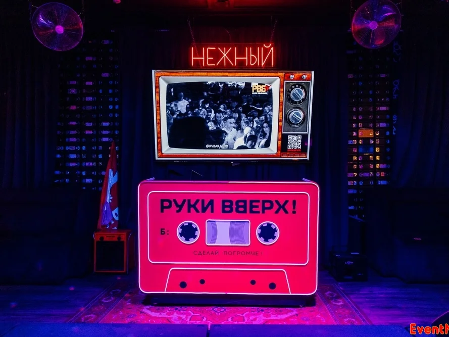 В нашем баре - новейшее оборудование и исключительно качественный звук. А так как девяностые без караоке — не девяностые, в Руки ВВерх! Бар придумали специальную акцию для тех, кто хочет без ограничения петь любимые хиты.