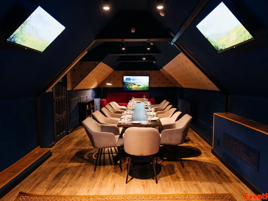 Главный зал первого этажа с большим танцполом, зал “Веранда”, вип-зал “Поле Чудес”, караоке-зал, вип-зал “Синий иней”.