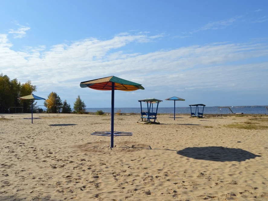 Непосредственное нахождение в сосновом бору, наличие большого песчаного пляжа и выхода на Горьковское водохранилище.